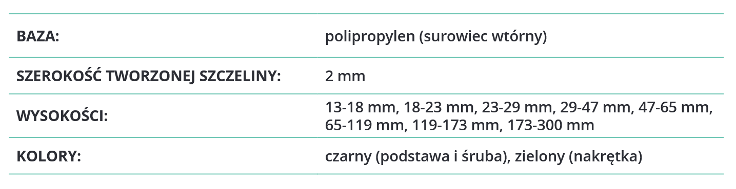 Wsporniki tarasowe o regulowanej wysokości od 13 mm do 300 mm. Stosowane w systemie z płytami grubowarstwowymi lub z deskami tarasowymi.