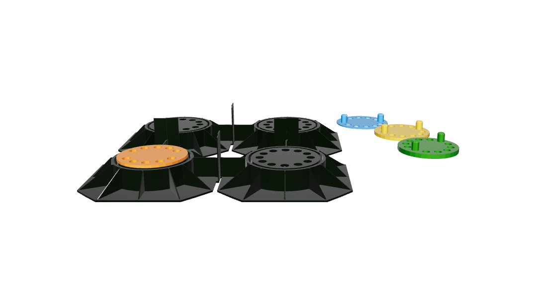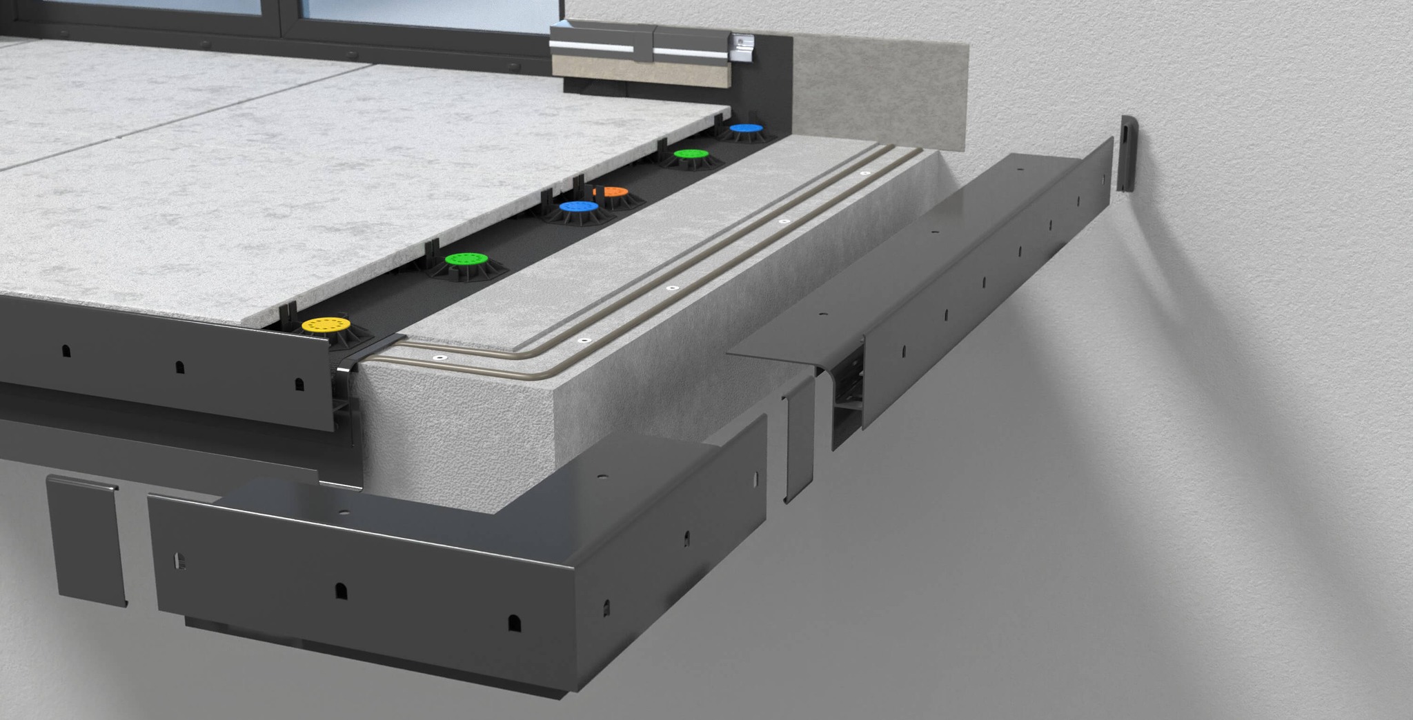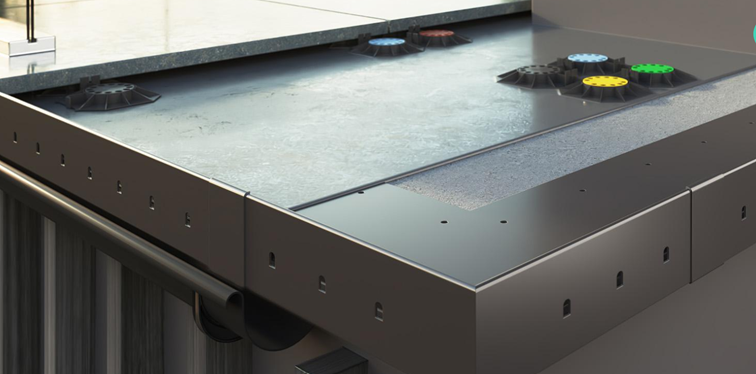 Dodatkowo wsporniki zostały wyposażone w ekspandery dające możliwość dodatkowego podniesienia o 50 lub 100 mm. Ważnym elementem są również korektory spadku, dzięki którym posadzka może być układana w poziomie przy zachowaniu spadku (maks 5%) w strefie drenażowej.