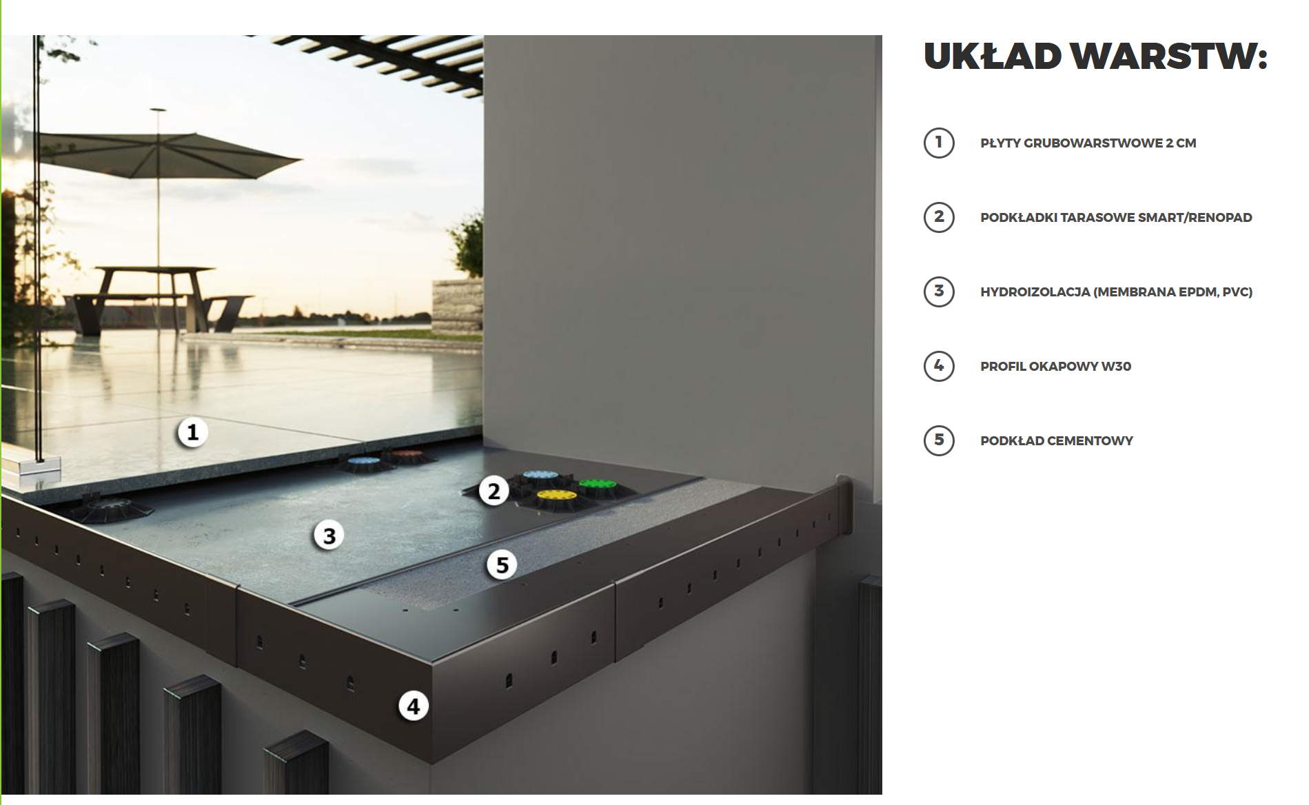 SMART – to bardzo zaawansowany rodzaj wsporników tarasowych przeznaczonych pod płyty tarasowe grubowarstwowe ceramiczne, kamienne lub betonowe, stosowane na tarasach wentylowanych.